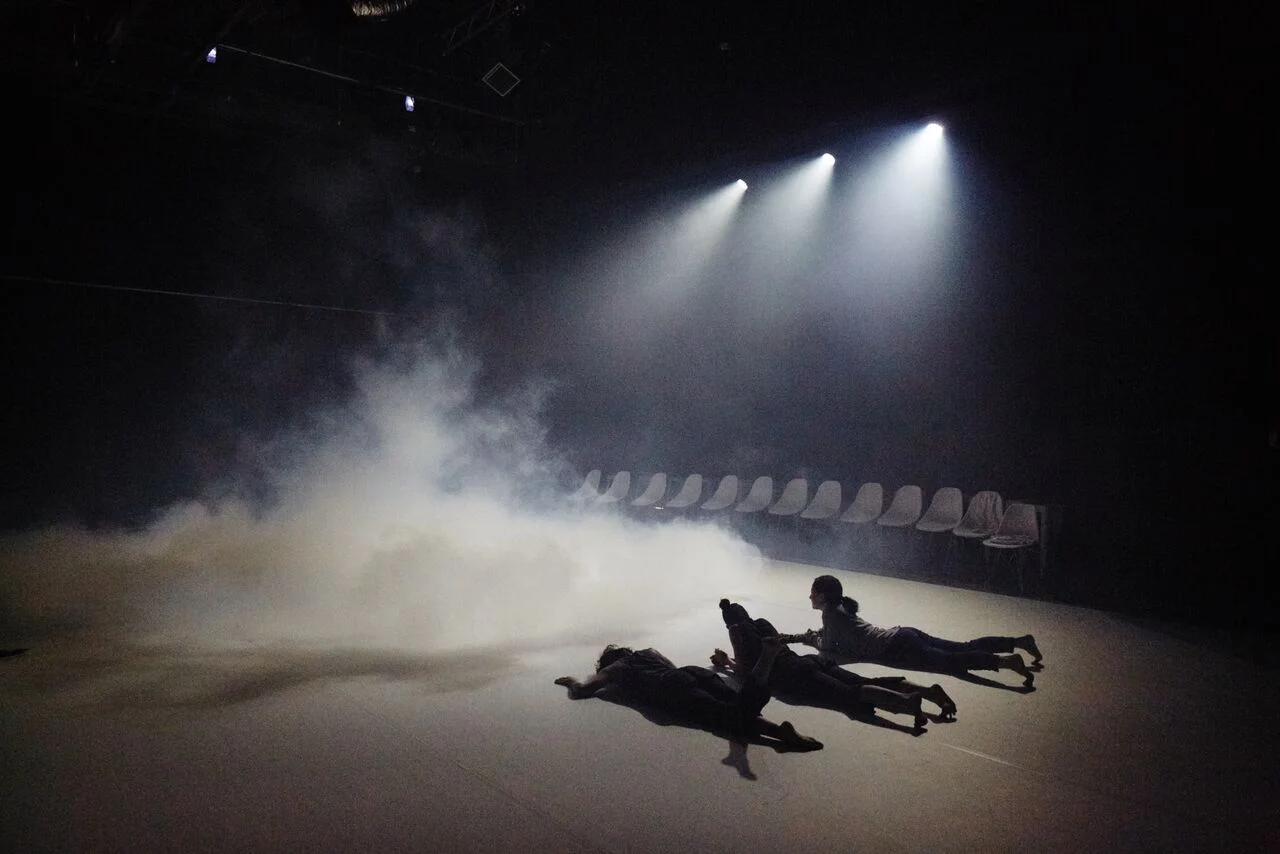 Mountain is Kristina Chan’s second full length choreographic work (following on from A Faint Existence ). Mountain is an exploration of time and movement. The flash of a human life span relative to the time it takes for a Mountain to form. It is also an expression of structures that are invisible to us because we are inside them, or too close to see them.Creating the imagery for Mountain was inspired by the play of light on water particles and the horizontal lines in the space describe the topography of a landscape we can’t quite see. Kris works with images and collaborating with her, I want to make images that are invisible. or which move in an out of perception.