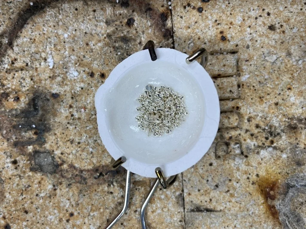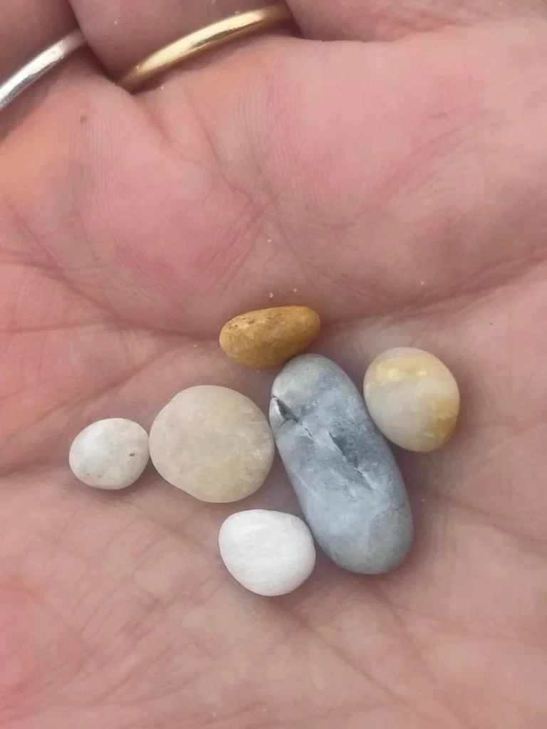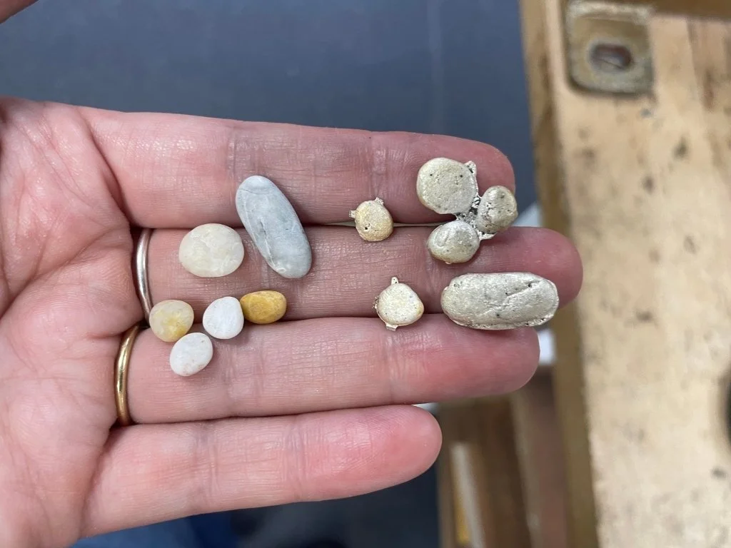 2026 Oil painting, pebbles (returned to beach), cast silver.